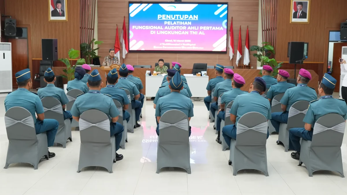 Ciawi, 10/03/2026 - Sesitjend TNI AL, Laksamana Pertama TNI Dedy Junaidi didampingi Direktur Pengawasan Bidang Pertahanan dan Keamanan BPKP, Setia Pria Husada, menutup secara resmi Pelatihan Fungsional Auditor Ahli Pertama di Lingkungan Inspektorat Jenderal TNI AL yang diikuti oleh 20 orang insan pengawasan dari Itjen TNI AL mulai tanggal 24 Februari 2026 s.d. 10 Maret 2026.