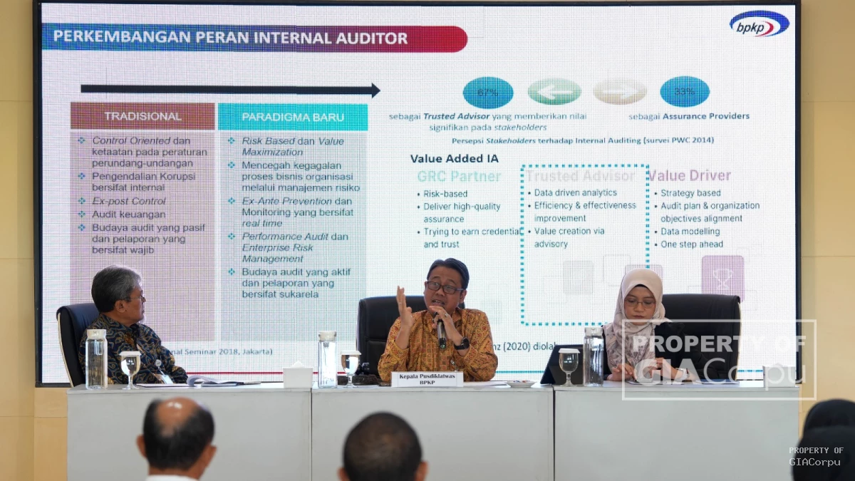 Pada pembukaan tersebut, Kepala Pusdiklatwas BPKP memberikan arahan mengenai Perkembangan Peran Internal Auditor dengan paradigma baru. Peran Auditor Internal yang awalnya berorientasi pada pengendalian dan ketaatan bertambah dengan paradigma baru sebagai trusted advisor yang berfokus pada risk based dan value maximization, mencegah kegagalan proses bisnis organisasi melalui manajemen Risiko, ex ante prevention dan monitoring yang bersifat real time, performance audit dan enterprise risk management, dan budaya audit yang aktif dan pelaporan yang bersifat sukarela.