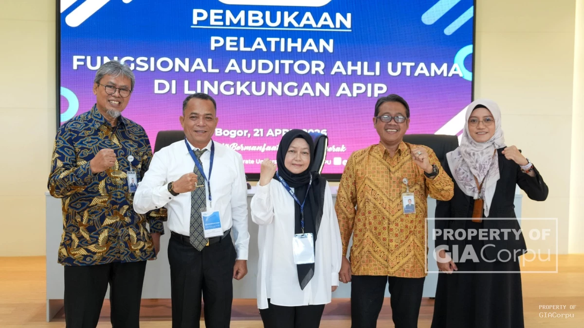 Bogor, 21 April 2026 - Pelatihan Fungsional Auditor Ahli Utama Tahun 2026 secara tatap muka telah dibuka secara resmi oleh Kepala Pusat Pendidikan dan Pelatihan Pengawasan BPKP, Raden Murwantara dan dihadiri oleh Asesor SDM Aparatur Ahli Utama BPKP, Dadang Kurnia, serta Koordinator Penyelenggaraan Pendidikan dan Pelatihan Pengawasan, Suri Warajati.